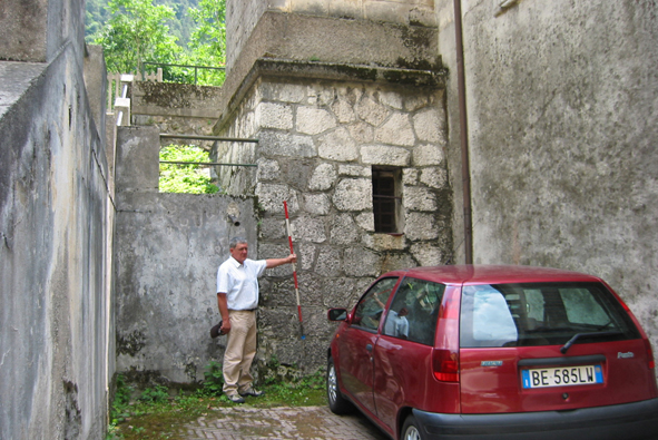 (CSO) - Bullone IGM infisso sulla faccia, lato strada, del campanile.