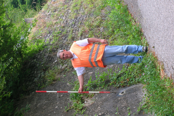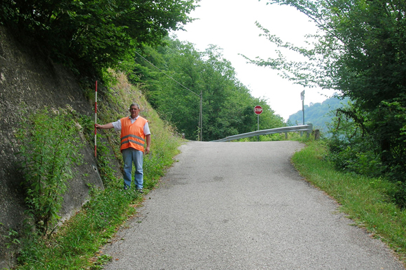 (CSO) - Bullone IGM infisso nel muro di scarpa imboccando il bivio per il Corlo.