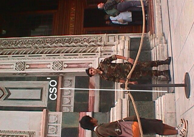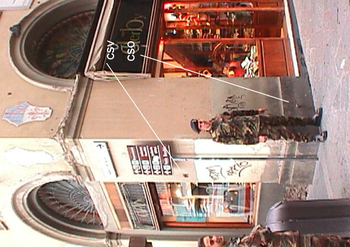 (CSO') - Disco impiombato sul pavimento alla base della facciata del Duomo, in una resega a sinistra della porta di sinistra.