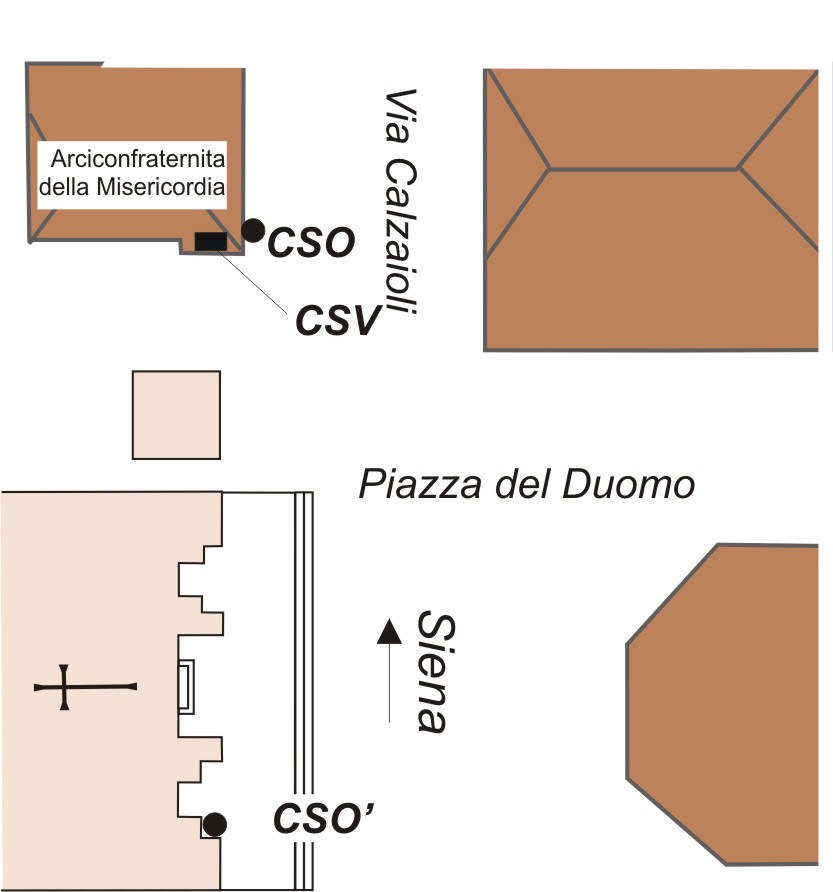 (CSV) - Piastrina antica infissa sulla facciata dell'edificio della Misericordia, presso lo spigolo destro all'angolo con Via Calzaiuoli