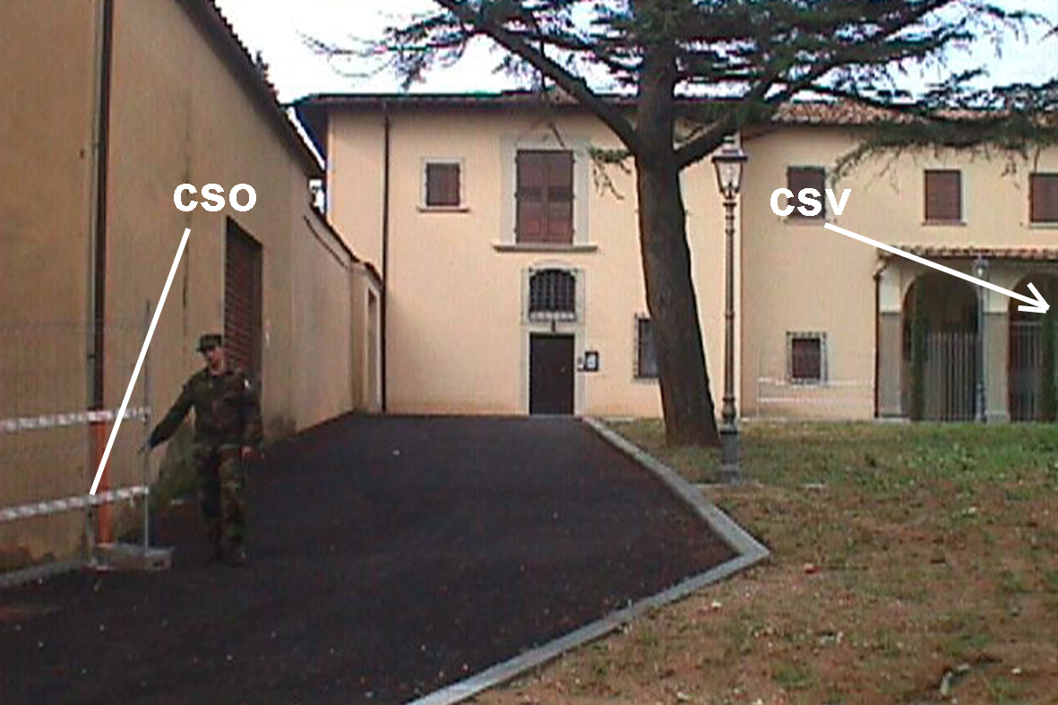 (CSO) - Bullone infisso sulla parete laterale sx, presso lo spigolo destro, del box facente parte del complesso edilizio del Monastero dell'Immacolata, a sinistra del n.civ 44 in viale S. Francesco d'Assisi