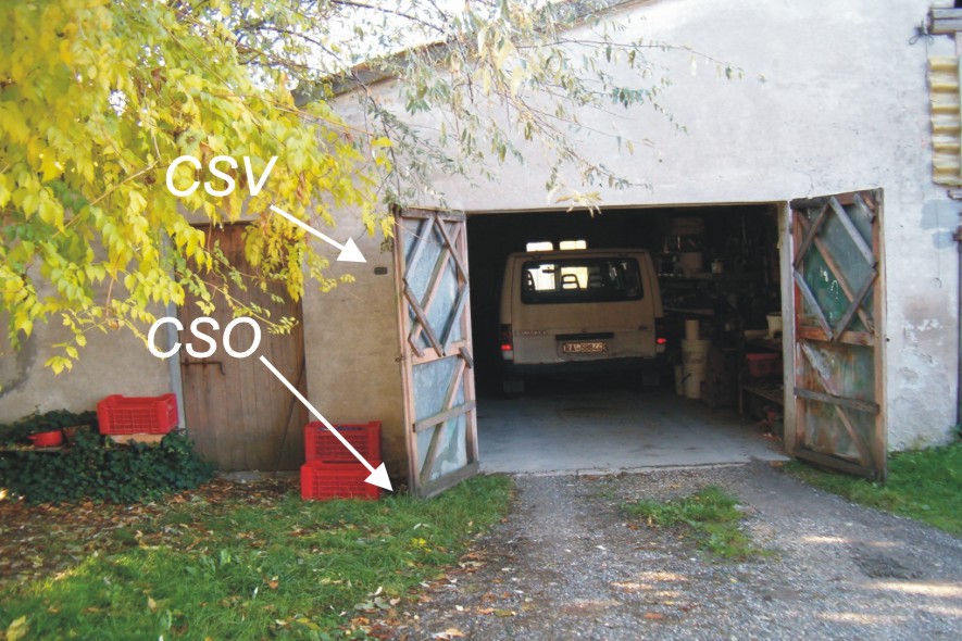 5 (CSV) - Piastrina IRTA infissa sulla facciata del magazzino, in corrispondenza del CSO.