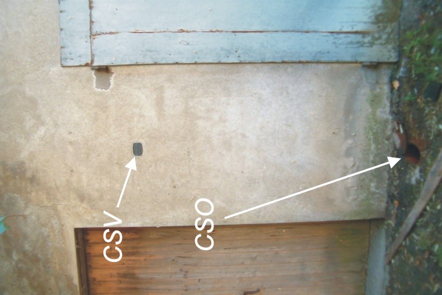 4 4 (CSO) - Chiusino in ghisa IRTA con Alto "A" interrato alla base della facciata del magazzino annesso alla proprieta al n° civ. 63 (ARPA N° 093090).