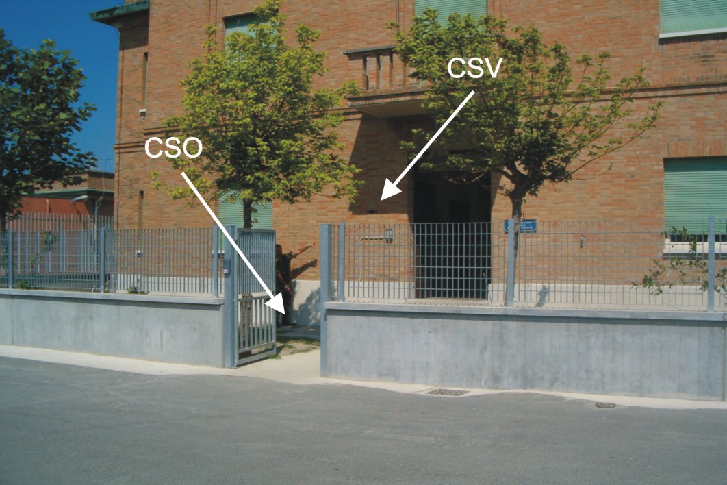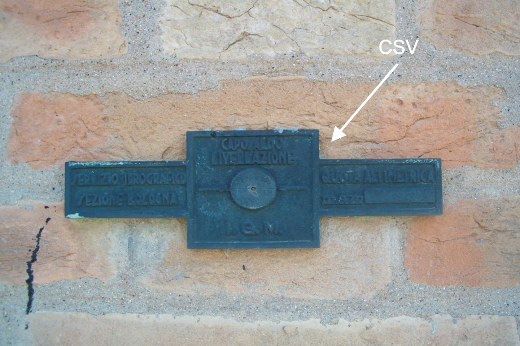(CSV) - Piastrina in ghisa con cilindretto IGM Servizio Idrografico, infissa sulla stessa facciata, in corrispondenza del CSO.