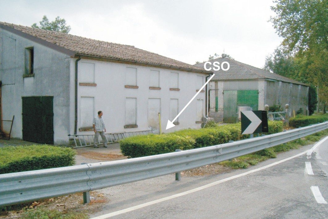 (CSO) - Pozzetto di IV° Cat. interato alla base della facciata volta verso la statale, quasi al centro, dell'edificio al N° Civ. 88/A. rialzato con tubo in PVC e coperchio in ghisa (ARPA N° 061050).