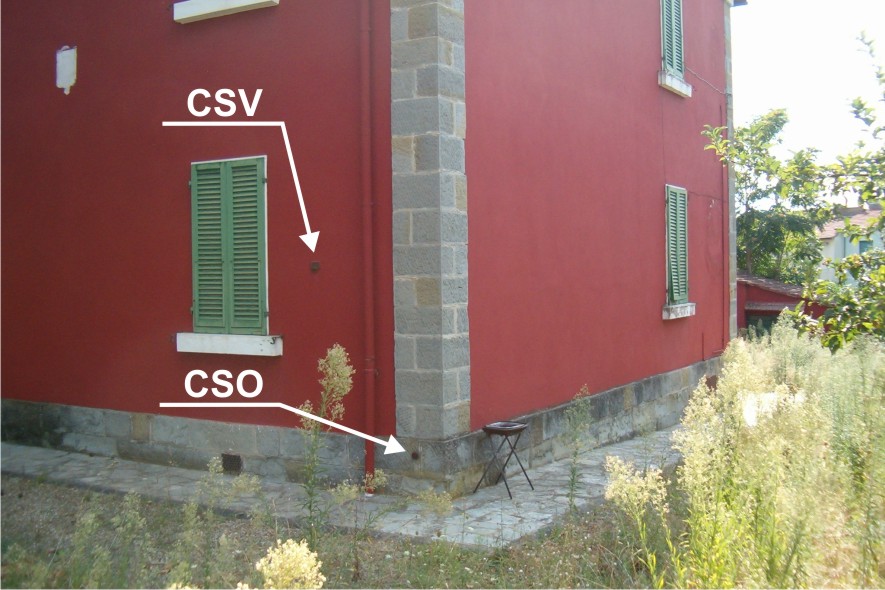 (CSO) - Bullone infisso sulla facciata, nei pressi dello spigolo sinistro.
