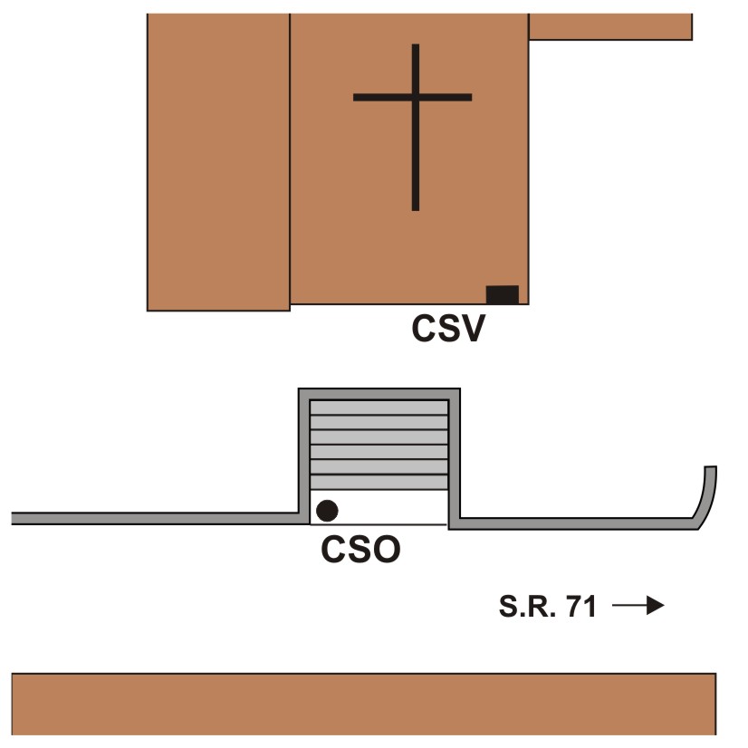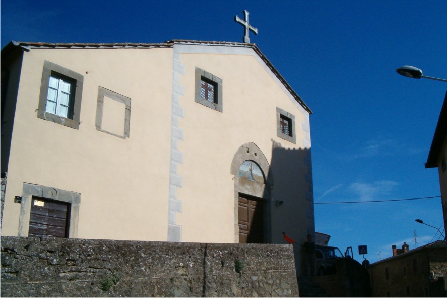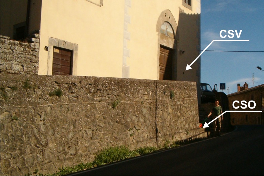 (CSV) - Piastrina antica infissa sulla facciata a destra della porta d'ingresso alla chiesa.