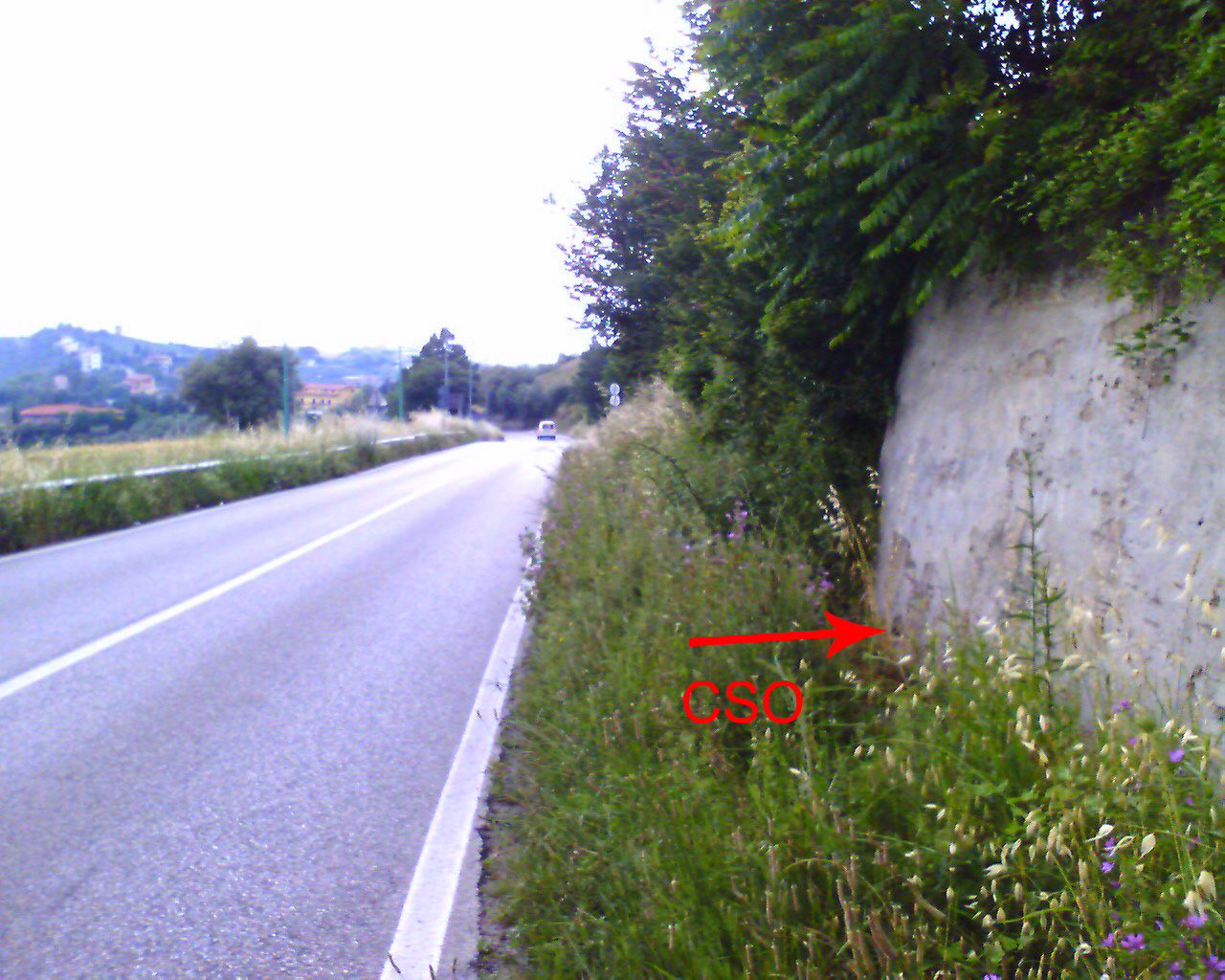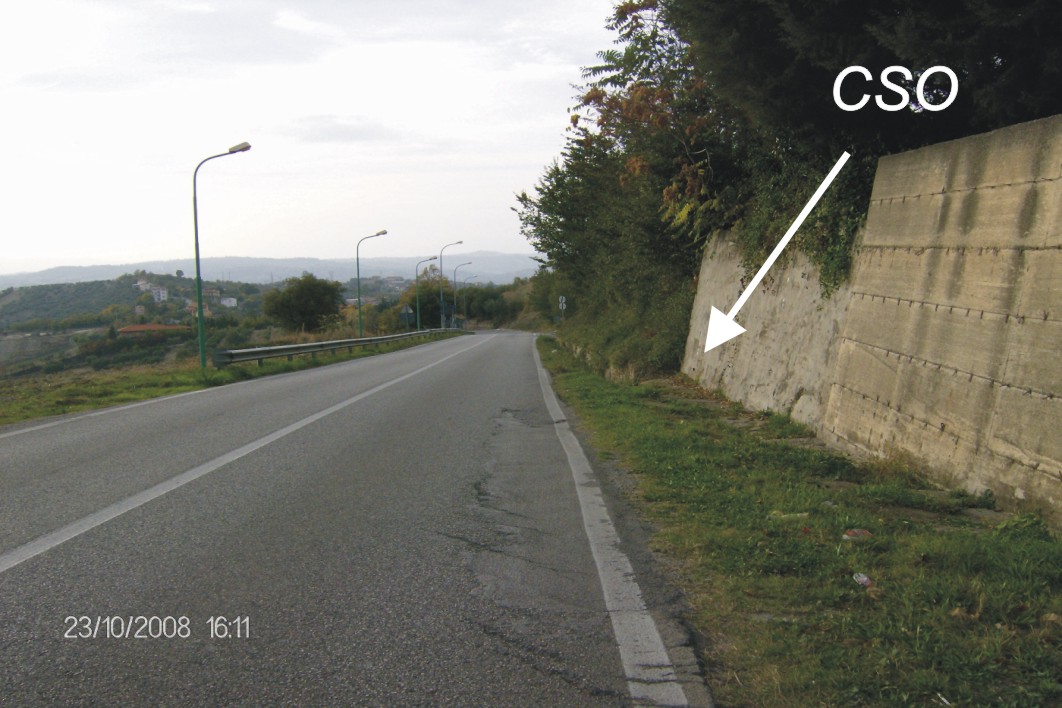 (CSO) - Bullone infisso nel muro di sostegno a monte della strada, 50 m ca prima dell'incrocio con la strada per Flumeri, al km 11,050 della S.S. 91.