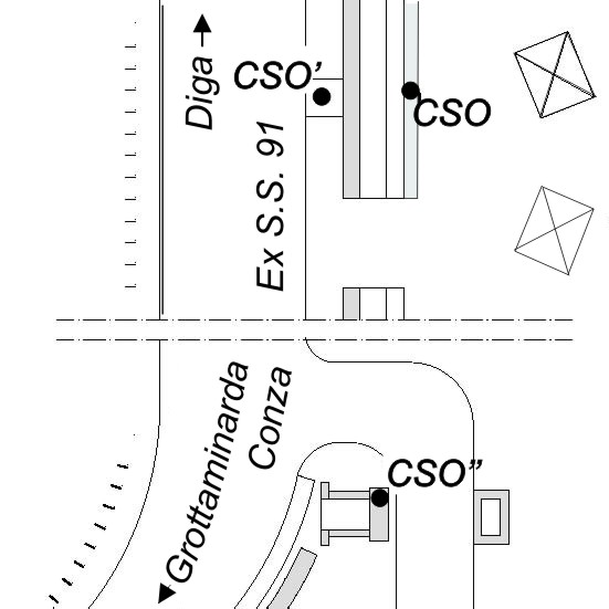 (CSO) - Chiusino in ghisa interrato a bordo strada, adiacente alla canaletta in c.a., oltrepassato il bivio per le Masserie Terlizzi, a destra in direzione diga di Conza.