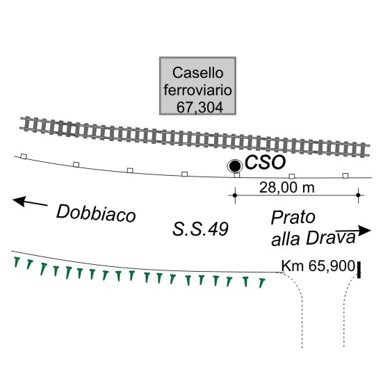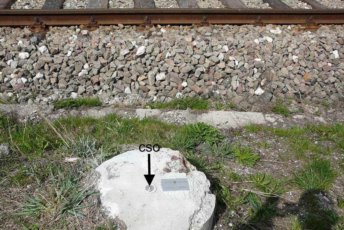 (CSO) - Centrino universale infisso sulla sommità di un pilastro tondo, raso suolo, in cemento armato, a valle dei binari, in prossimità del casello ferroviaria 67,304.