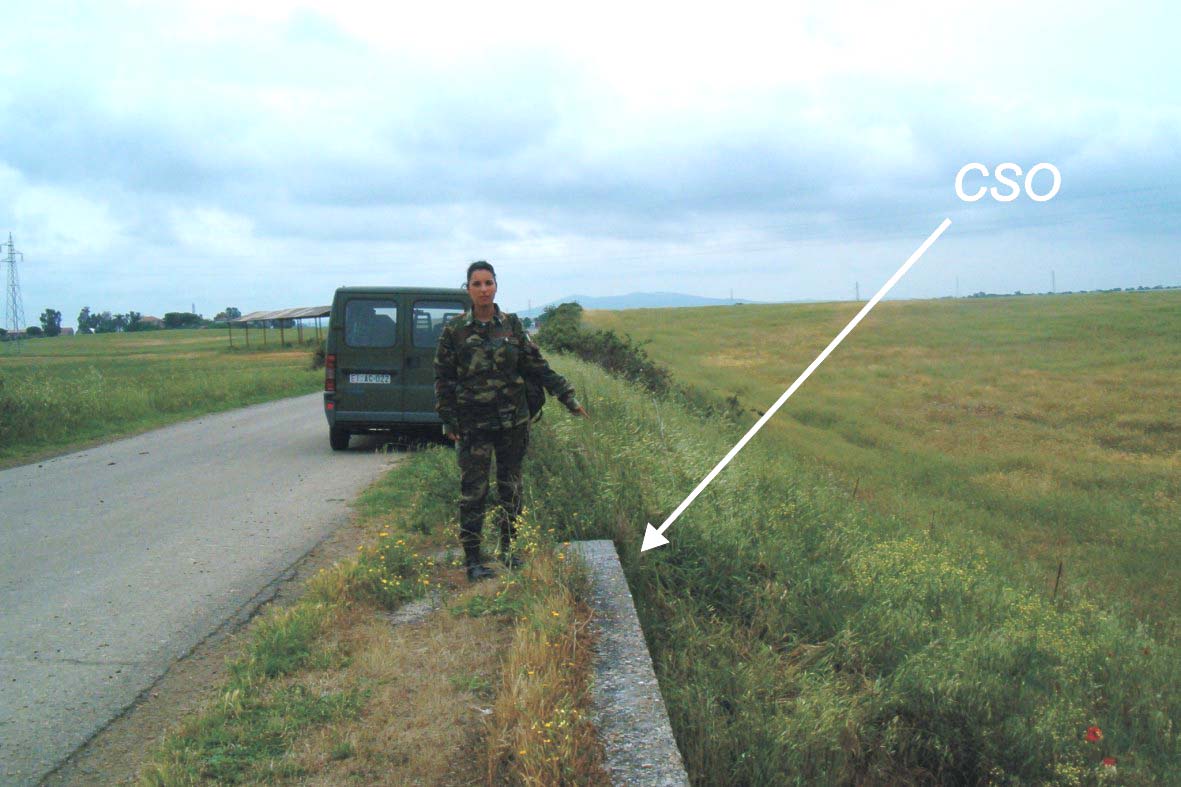(CSO) - Bullone infisso nel muro di contenimento, lato strada, posto a 60 cm. dall'estremo in direzione della S.S.1.