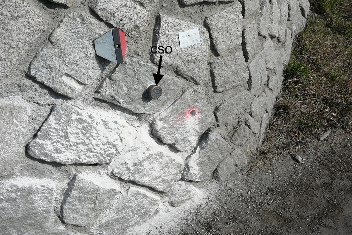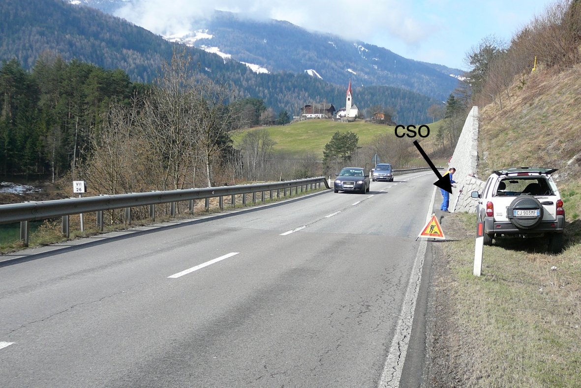 (CSO) - Bullone infisso nel muro di sostegno in pietra naturale a sinistra della strada, in direzione Brunico.