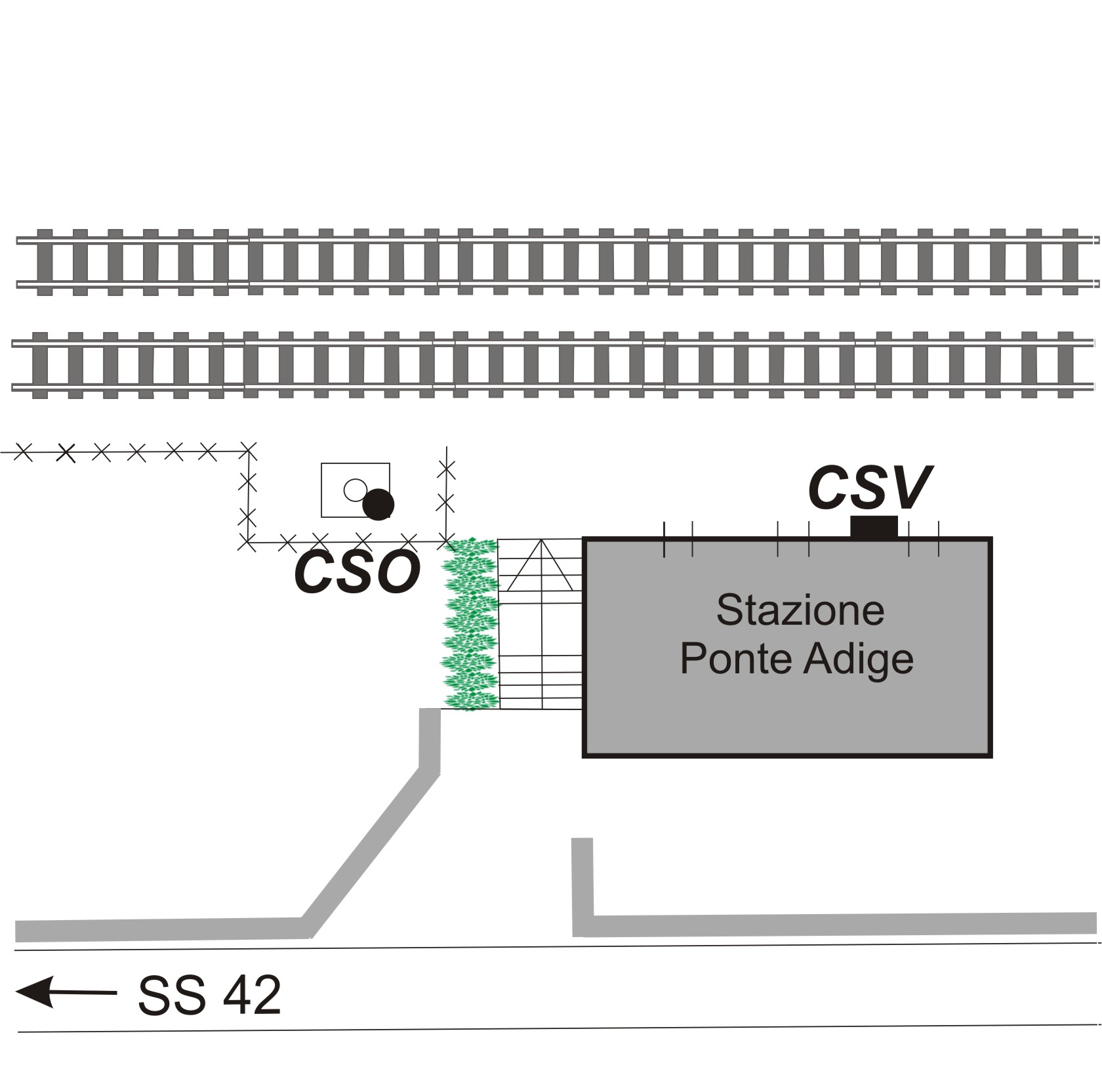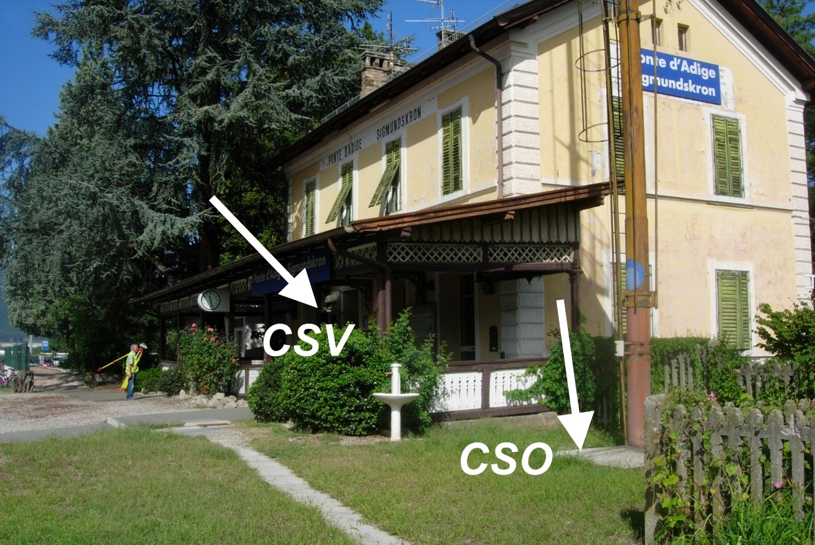 (CSO) - Centrino universale infisso sulle fondamenta di un palo della linea elettrica a sinistra delle scale di accesso alla stazione ferroviaria.
