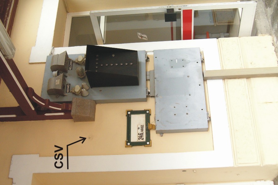 (CSV) - Borchia in bronzo di altro Ente infisso sulla facciata della stazione, lato binari a sinistra della porta.