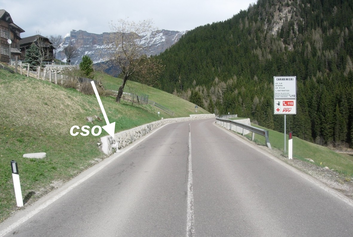 (CSO) - Bullone infisso nel muro in sassi posto a monte della strada ed a circa 40 m dalla chilometrica 30,500.
