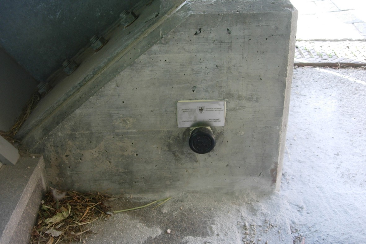 (CSO) - Bullone infisso nel basamento in cemento del soprappasso della pista da sci.