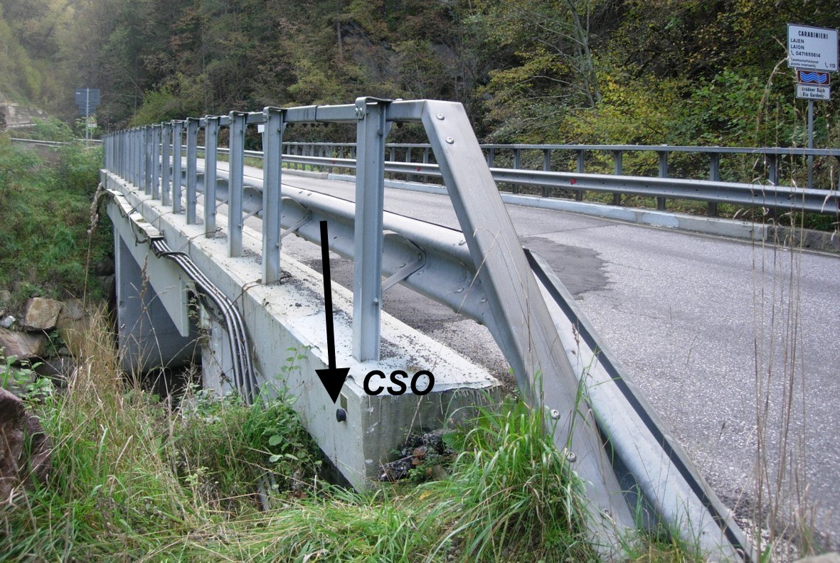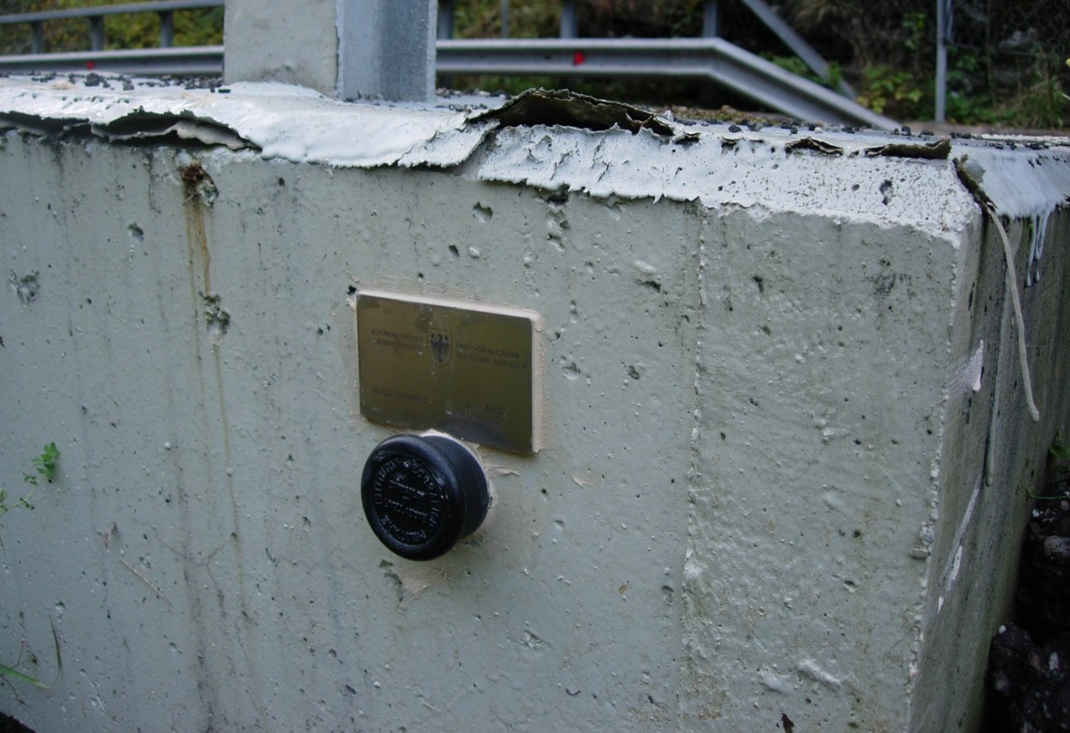 (CSO) - Bullone infisso nella trave del ponte a sinistra in direzione Corvara in Badia