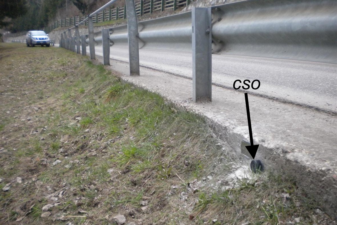 (CSO) - Bullone infisso nel cordolo in cemento armato, a valle.