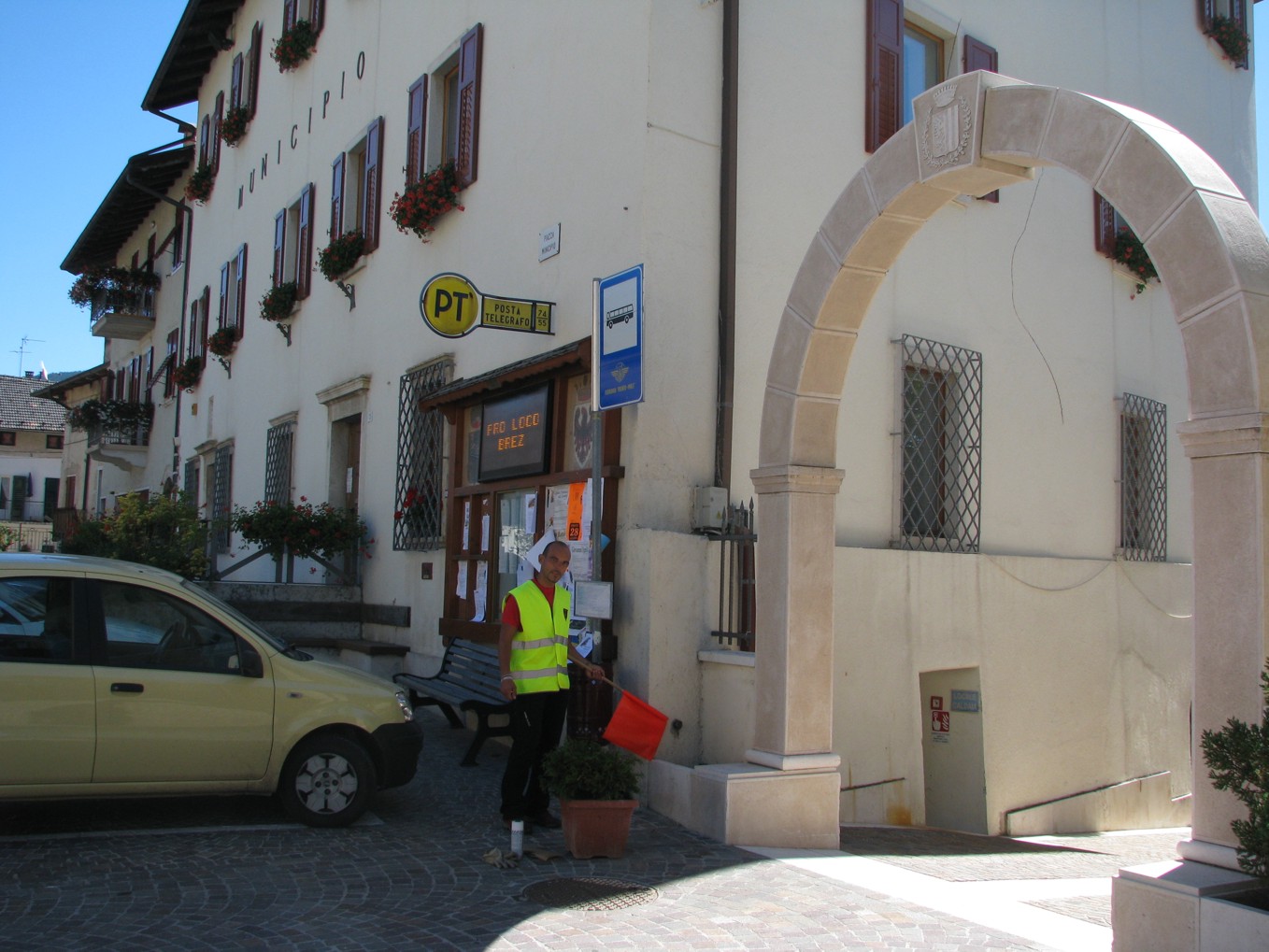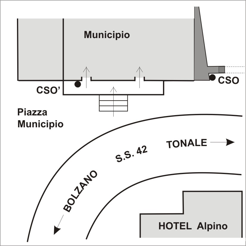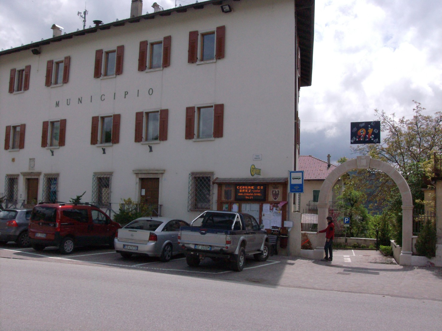 (CSO) - Bullone infisso nel muro laterale destro del municipio di Brez in corrispondenza dello spigolo destro vicino all'arco in pietra.