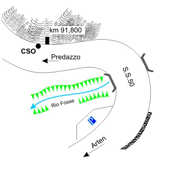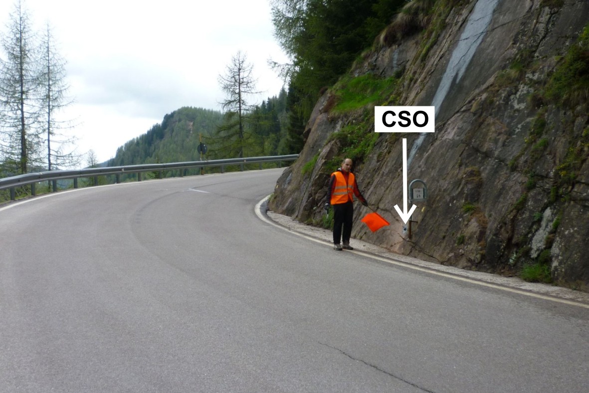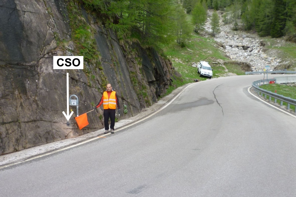 (CSO) - Bullone infisso su roccia a circa 0,50 metri a sinistra della segnalazione del km 91,800.