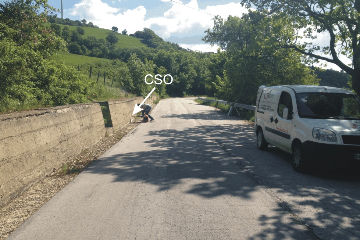 (CSO) - Bullone infisso alla base del muro di contenimento, sul lato della strada opposto al CSV