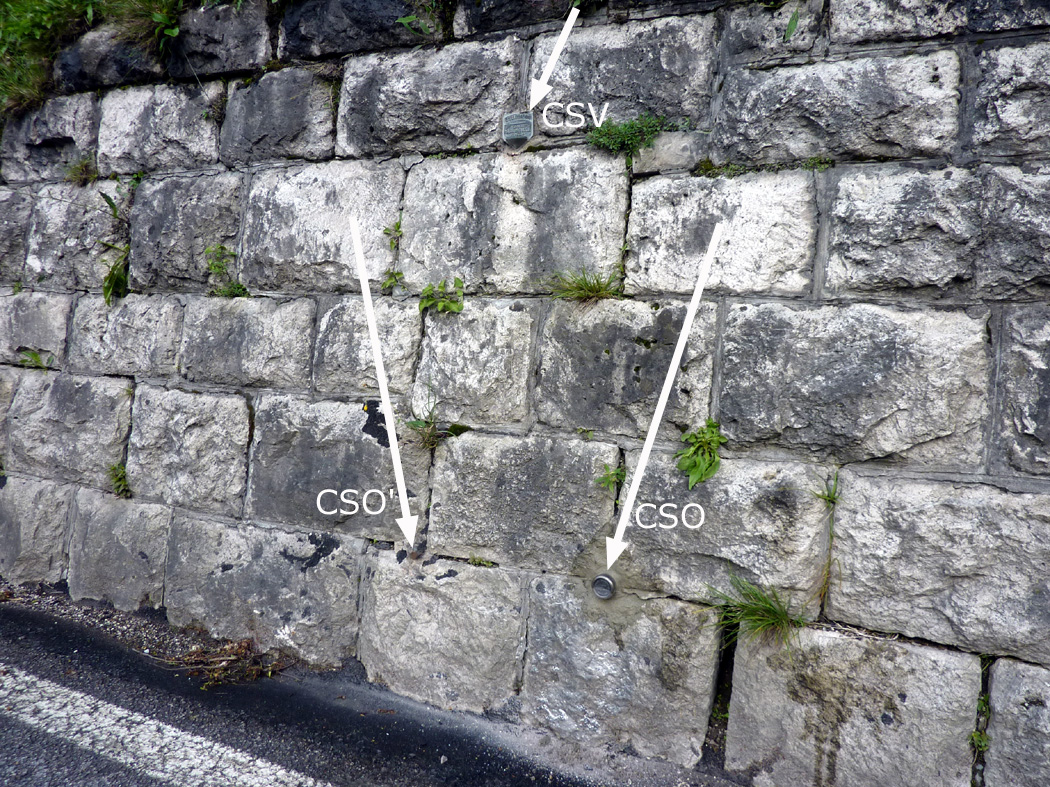 (CSO) - Bullone infisso su muro di sostegno al lato destro della S.S.203, in direzione Agordo, al km 24.505.