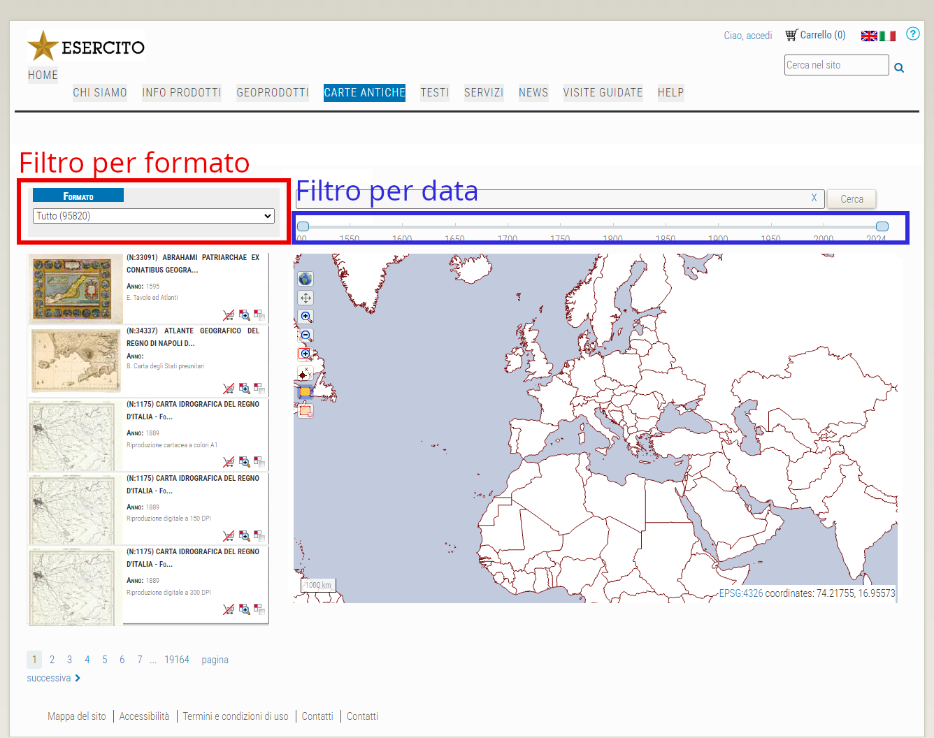 Carte antiche - Filtro risultati ricerca