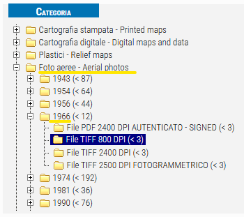 Albero geoprodotti per acquisto foto aeree
