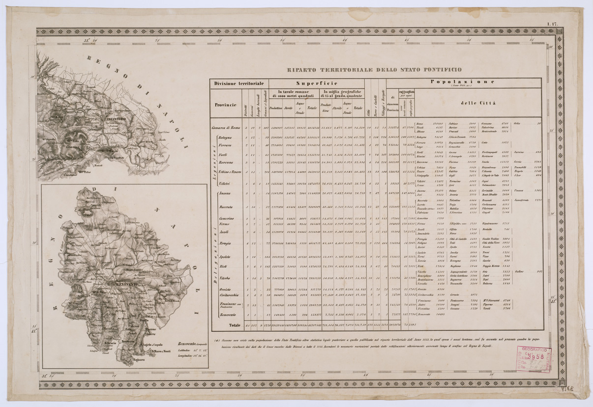 (N:8176) CARTA TOPOGRAFICA DELLO STATO PONTIFICIO E DEL GRAN-DUCATO DI TOSCANA - Tavola I. 17 (B0000233) Carte e stampe antiche: riproduzione digitale a 150 DPI