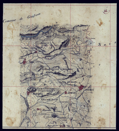 (N:23538) VALLE DELLA DORA EXILLES MINUTE AL 10.000. RILIEVI ESEGUITI NEL 1864 ALLIEVI INGEGNERI DEL R. CORPO DEL GENIO CIVILE ALLA SCALA DI 1 A 10.000 - FOGLIO 16. (CA002082) Carte e stampe antiche: riproduzione digitale a 300 DPI