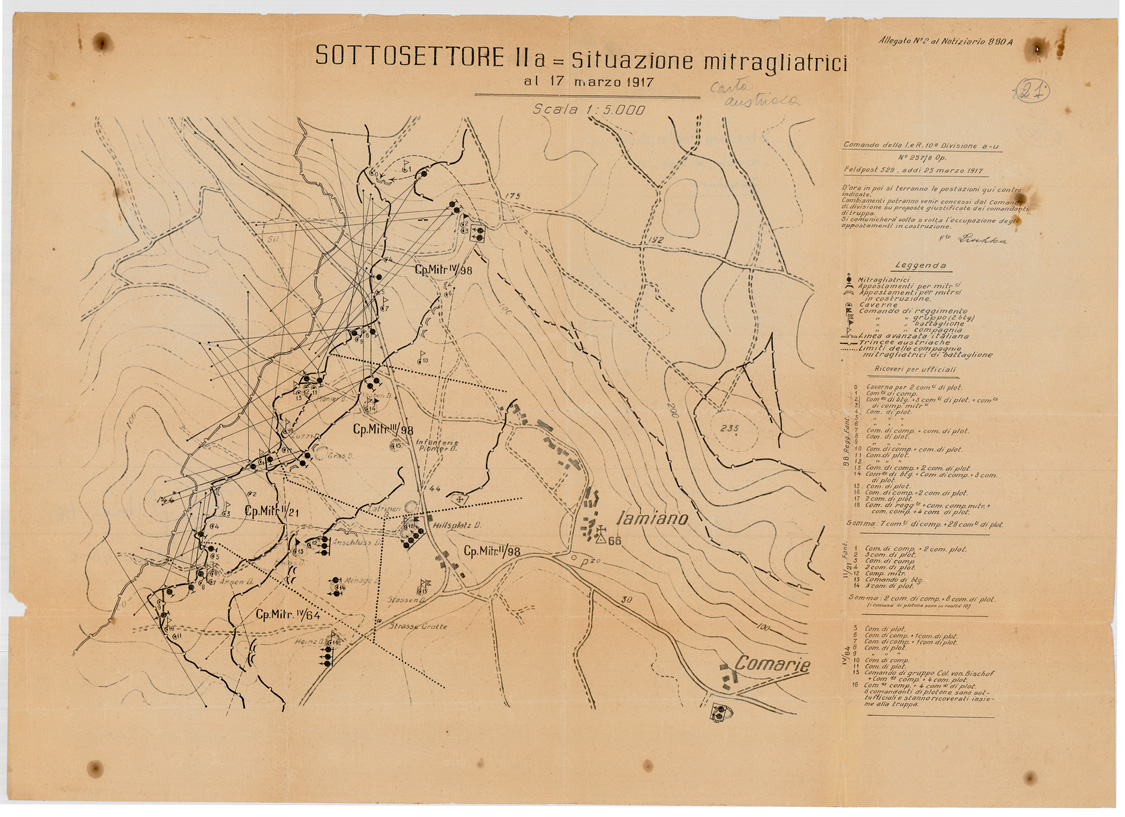Situazione mitragliatrici nemiche alla data del 17/3/1917 (da carta austriaca)