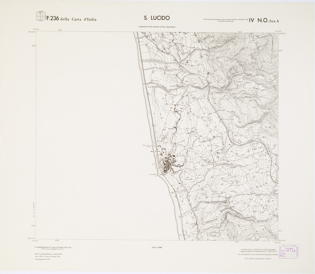 (N:7313) CARTA TOPOGRAFICA DELLA CALABRIA - Foglio 236 IV N.O. SEZ.A - S. Lucido (B0001417) Carte e stampe antiche: riproduzione digitale a 300 DPI