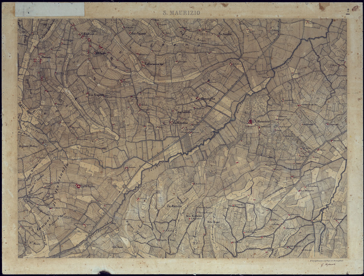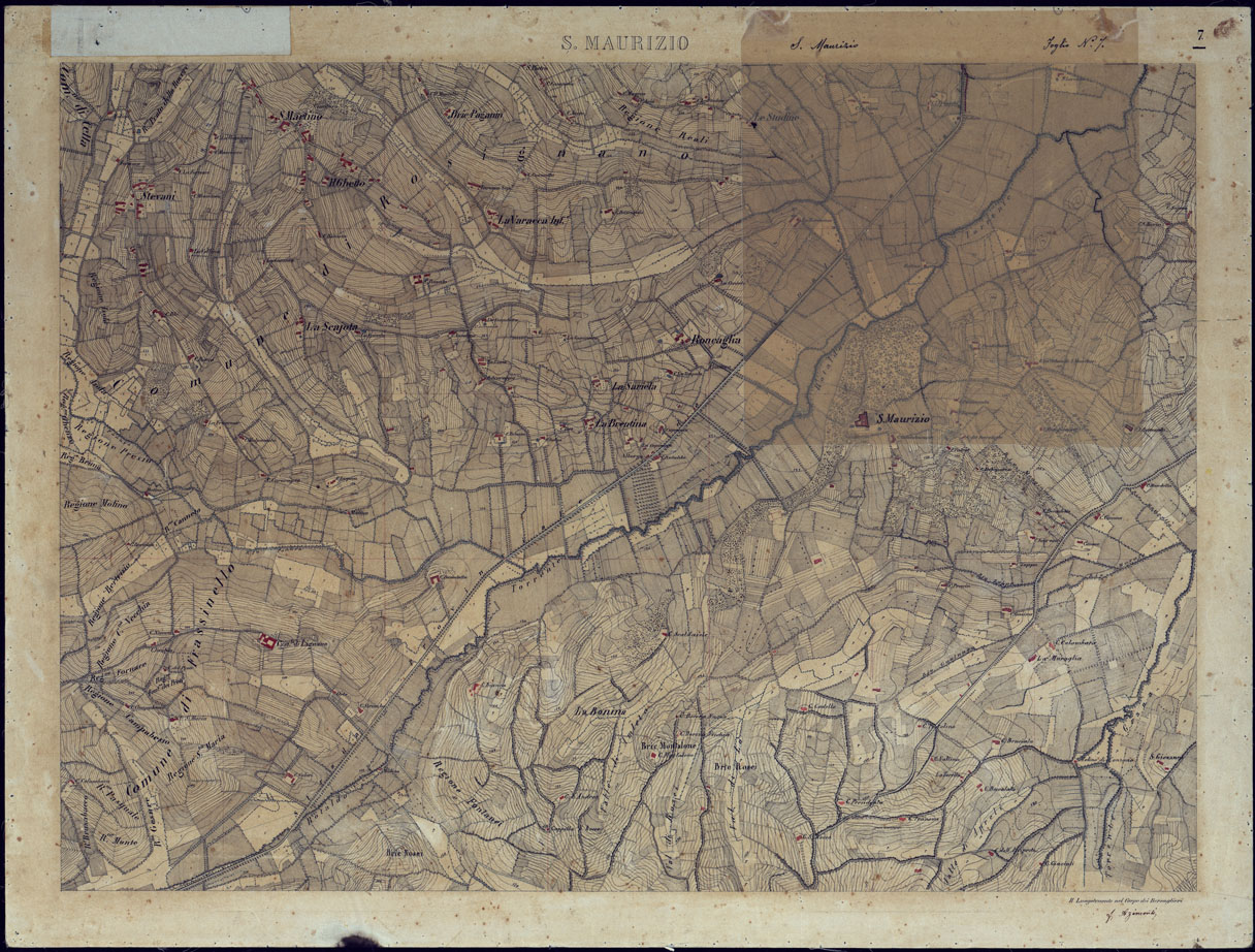 (N:8628) TERRITORIO COMPRESO TRA ALESSANDRIA, CASALE, VOLPEDO E TRA PAVIA, CASTEGGIO E PIACENZA S. MAURIZIO - FOGLIO 7 CON VELINA DI AGGIORNAMENTO. (CA002144, CA002145) Carte e stampe antiche: riproduzione digitale a 300 DPI