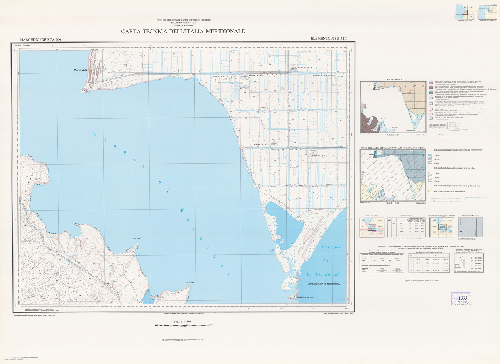 (N:5979) CARTA TECNICA DELL'ITALIA MERIDIONALE - INIZIO DEI RILIEVI SARDEGNA PER CONTO DELLA CASSA PER IL MEZZOGIORNO - Elemento 538-B3-III - Marcedd (Oristano) (B0004870) Carte e stampe antiche: riproduzione digitale a 300 DPI